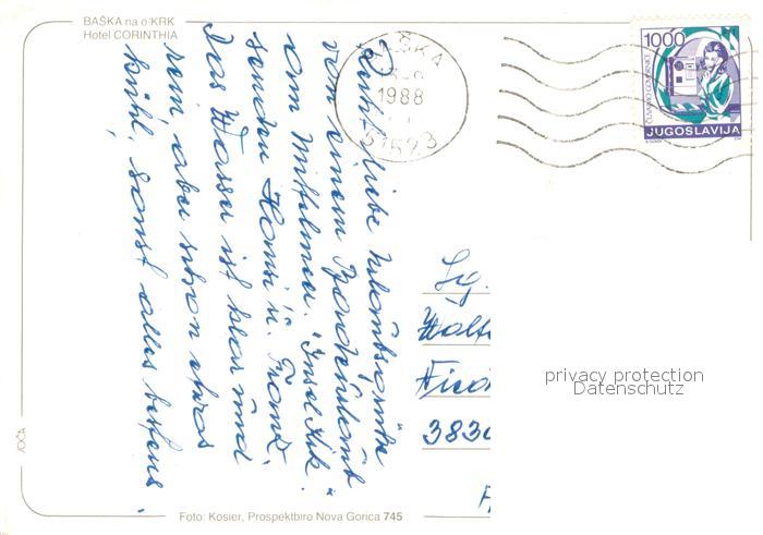 73711196 Baska Otok Krk Fliegeraufnahme Hotel Corinthia und Strand postalisch gelaufen Erhaltung siehe scans [LiesaD40] old postcard Lies Katcode 11260