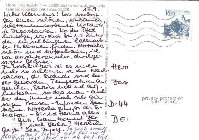 old postcard Baska Otok Krk Hotel Horizont Strand Fliegeraufnahme postalisch gelaufen Erhaltung siehe scans