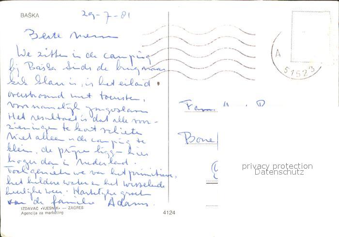 old postcard Baska Otok Krk Teilansicht Moewe Boote postalisch gelaufen Erhaltung siehe scans