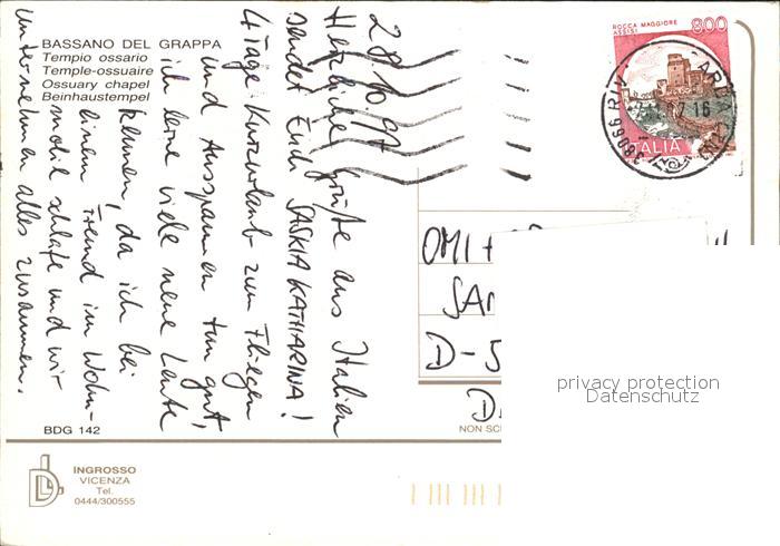 old postcard Bassano del Grappa Beinhaustempel postalisch gelaufen Erhaltung siehe scans