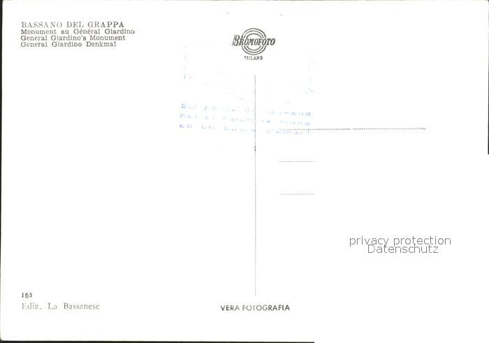Bassano del Grappa Monument au General Giardino postalisch nicht gelaufen Erhaltung siehe scans