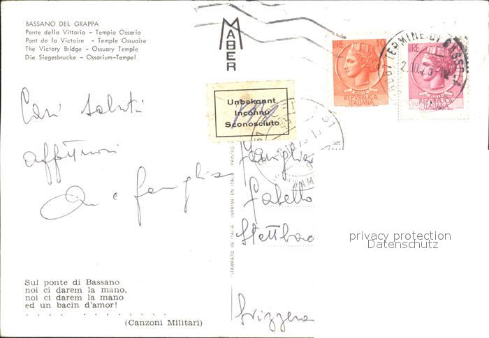 old postcard Bassano del Grappa Ponte della Vittoria Tempio Ossario Siegesbruecke Ossarium Tempel postalisch gelaufen Erhaltung siehe scans