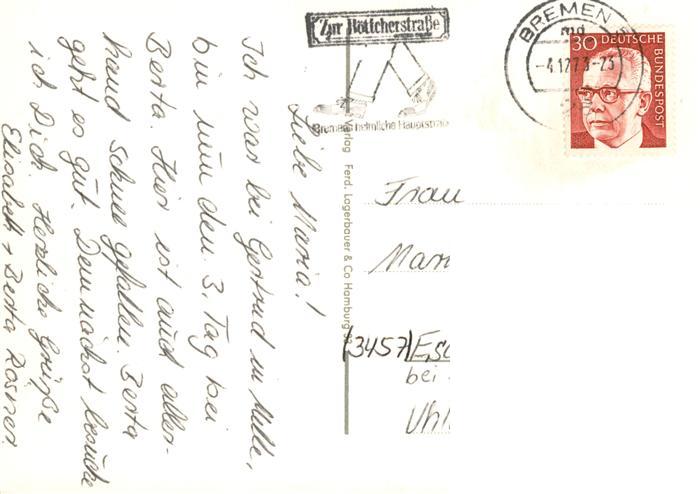 73879309 alte Postkarte Bassum Bremer Strasse Stiftskirche Rathaus Tierpark Freudenburg Freibad Sulinger Strasse Sportschule postalisch gelaufen Erhaltung siehe scans [FriedD77] KatCode: 11110003251007