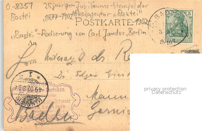 73697990 alte Postkarte Bastei Saechsische Schweiz Bastei-Radierung postalisch gelaufen Erhaltung siehe scans [LiesaD40] KatCode: 11110014287310