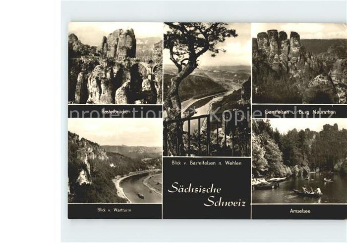 71965864 alte Postkarte Bastei Saechsische Schweiz Basteibruecke Gansfelsen Burg Neurathen Amselsee Wehlen postalisch gelaufen Erhaltung siehe scans KatCode: 11110014287310
