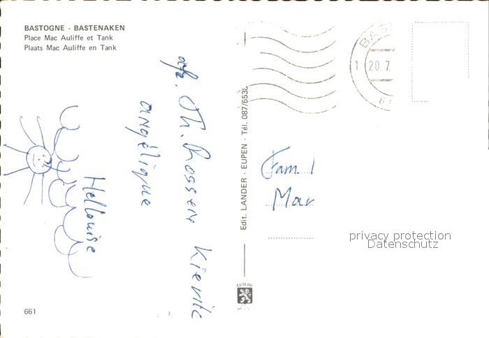 72389865 carte postale Bastogne Liege Bastenaken Place Mac et Tank postalisch gelaufen Erhaltung siehe scans KatCode: 11070082000033