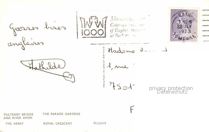 old postcard Bath UK Pulteney Bridge River Avon Parade Gardens Abbey Royal Crescent postalisch gelaufen Erhaltung siehe scans [FriedD77]