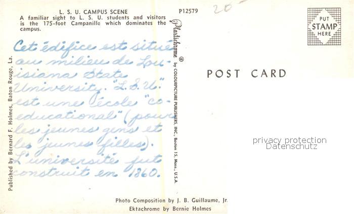 73130757 Baton Rouge LSU Campus Scene Lousiana State University postalisch nicht gelaufen Erhaltung siehe scans [FriedD77] KatCode: 14140200000000