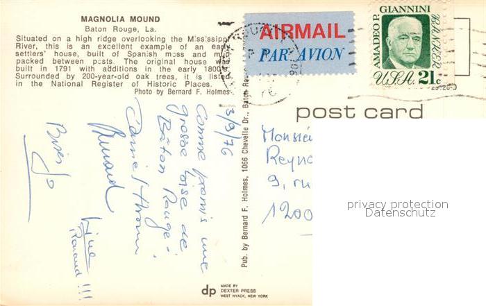 72944192 old postcard Baton Rouge Magnolia Mound postalisch gelaufen Erhaltung siehe scans [WerneD78] KatCode: 14140200000000