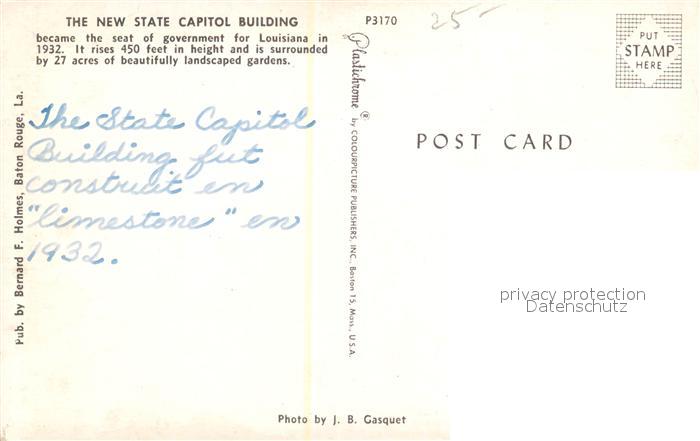 73130759 Baton Rouge New State Capitol Building postalisch nicht gelaufen Erhaltung siehe scans [FriedD77] KatCode: 14140200000000