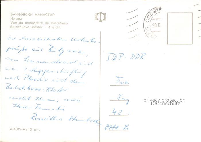 old postcard Batschkowo Kloster postalisch gelaufen Erhaltung siehe scans