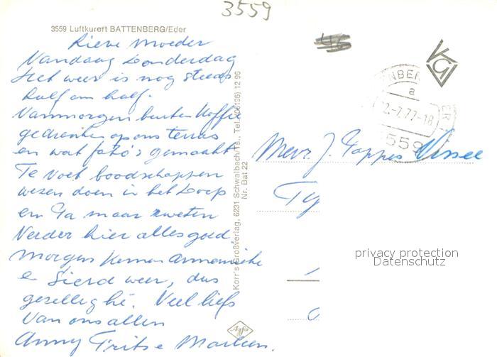 73692937 alte Postkarte Battenberg Eder Brunnen Stadtansicht Bruecke Ederpartie postalisch gelaufen Erhaltung siehe scans [WerneD78] KatCode: 11110006635004