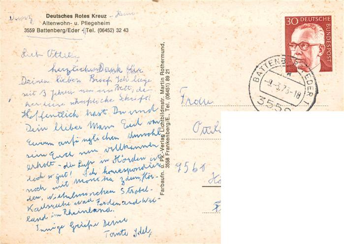 73935039 alte Postkarte Battenberg Eder DRK Altenwohn und Pflegeheim Schaefer mit Herde postalisch gelaufen Erhaltung siehe scans [FriedD77] KatCode: 11110006635004