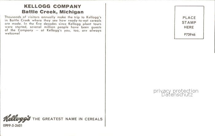 11688600 Battle Creek Michigan Kellog Company postalisch nicht gelaufen Erhaltung siehe scans KatCode: 14140240000000