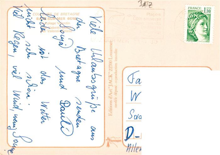 13905464 Batz-sur-Mer 44 Loire-Atlantique La plage Valentin Fliegeraufnahme postalisch gelaufen Erhaltung siehe scans [FriedD77] carte postale Frie Katcode 11170044344010