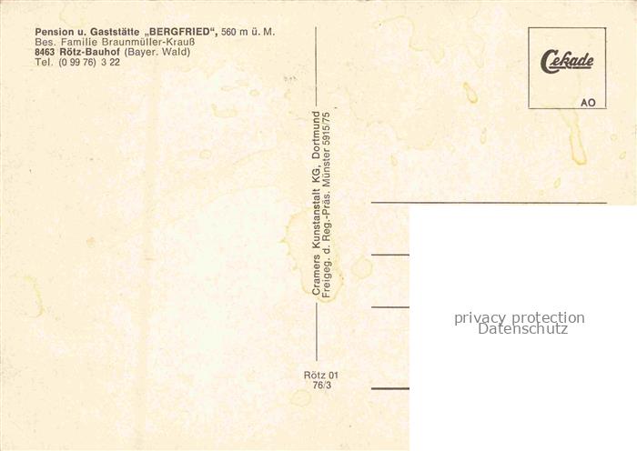 74142401 Bauhof Roetz Oberpfalz Bayerischer Wald Cham Bayern Pension Gaststaette Bergfried postalisch nicht gelaufen Fliegeraufnahme Erhaltung siehe scans [FriedD77] KatCode: 11110009372154