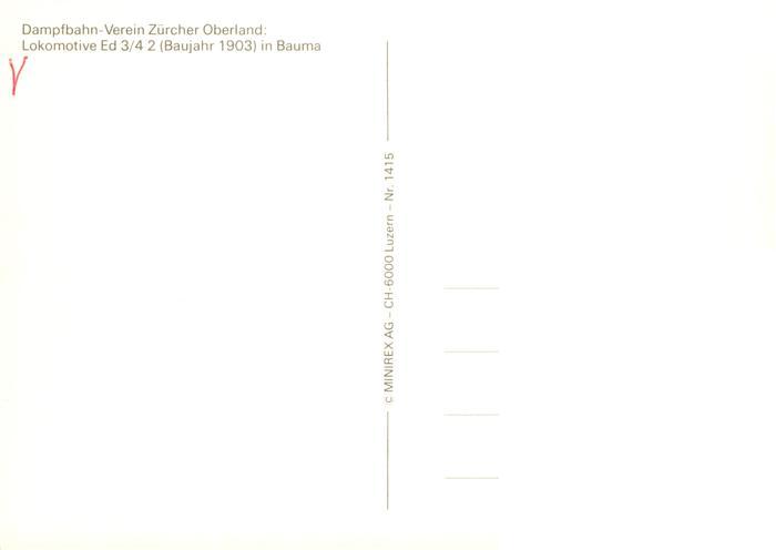 13901406 Bauma ZH Dampfbahn-Verein Zuercher Oberland Lokomotive Ed 3/4 2 Baujahr 1903 Viadukt postalisch nicht gelaufen Erhaltung siehe scans [FriedD77] KatCode: 11470260900390