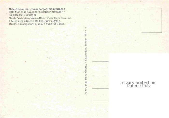 74023784 Baumberg Rheinland Café Restaurant Baumberger Rheinterrasse postalisch nicht gelaufen Erhaltung siehe scans [FriedD77] KatCode: 11110005158026