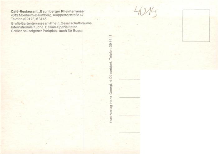 73943928 Baumberg Rheinland Café Restaurant Baumberger Rheinterrasse postalisch nicht gelaufen Erhaltung siehe scans [FriedD77] KatCode: 11110005158026