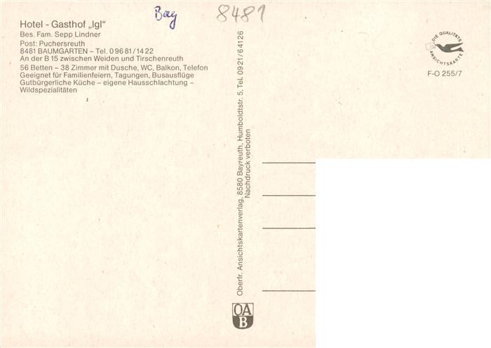 73894112 Baumgarten Weiden Hotel Gasthof Igl postalisch nicht gelaufen Erhaltung siehe scans [WerneD78] Wern Katcode 11110009374132
