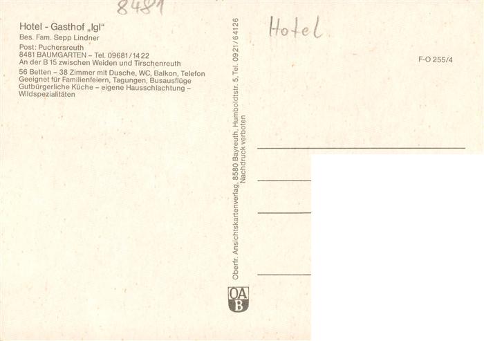 73894113 Baumgarten Weiden Hotel Igl postalisch nicht gelaufen Erhaltung siehe scans [WerneD78] Wern Katcode 11110009374132