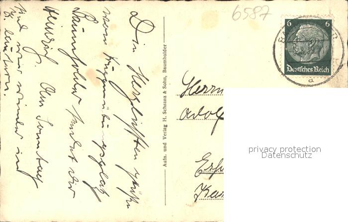 41792244 alte Postkarte Baumholder Nahe postalisch gelaufen Erhaltung siehe scans KatCode: 11110007134005