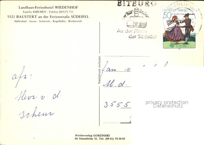 72542249 alte Postkarte Baustert Landhaus Ferienhotel Wiedenhof postalisch gelaufen Erhaltung siehe scans [KathaD75 kv015box] KatCode: 11110007232009