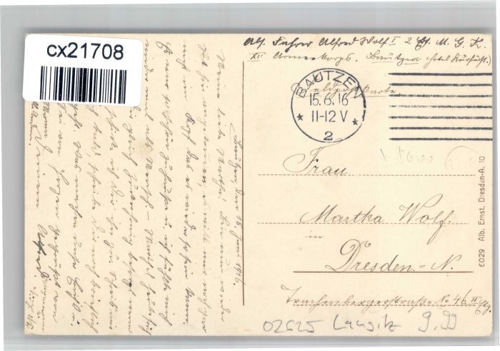 30740089 alte Postkarte Bautzen Koenig Albert Denkmal postalisch gelaufen KatCode: 11110014272010