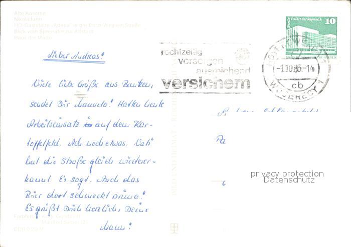 72338738 alte Postkarte Bautzen Sachsen Alte Kaserne Nikolaiturm HO Gaststaette Adena Spreeufer Altstadt Haus der Mode postalisch gelaufen Erhaltung siehe scans KatCode: 11110014272010