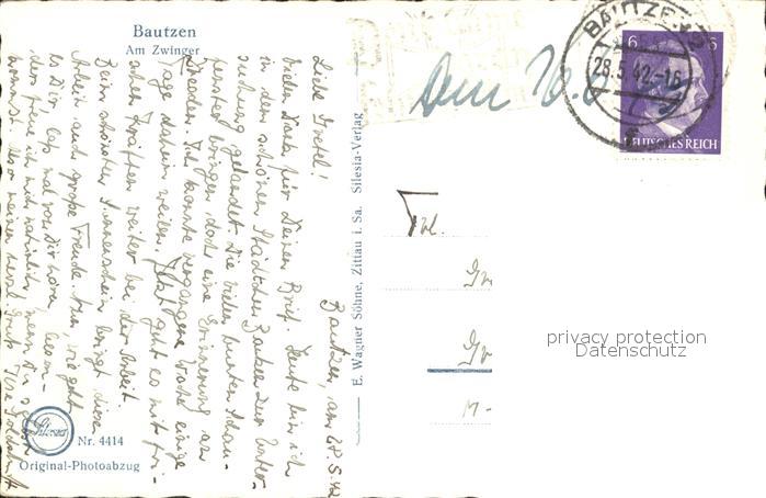 72167474 alte Postkarte Bautzen Sachsen Am Zwinger postalisch gelaufen Erhaltung siehe scans KatCode: 11110014272010