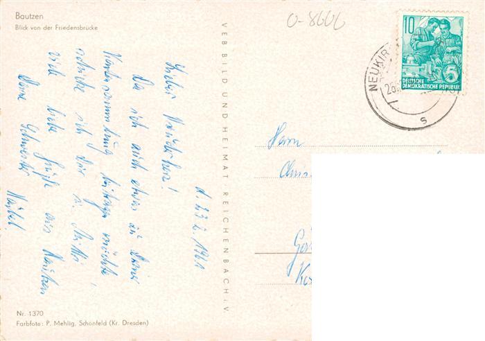 73948045 alte Postkarte Bautzen Sachsen Blick von der Friedensbruecke postalisch gelaufen Erhaltung siehe scans [WerneD78] KatCode: 11110014272010