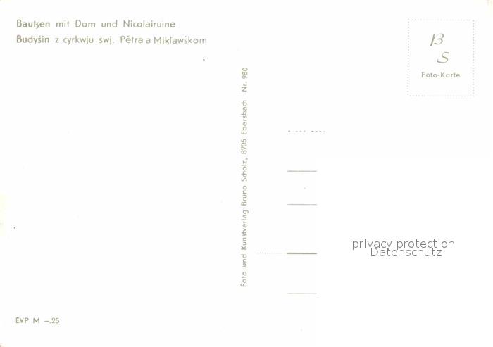 72644645 Bautzen Sachsen Dom Nicolairuine postalisch nicht gelaufen Erhaltung siehe scans [AndreD76] KatCode: 11110014272010