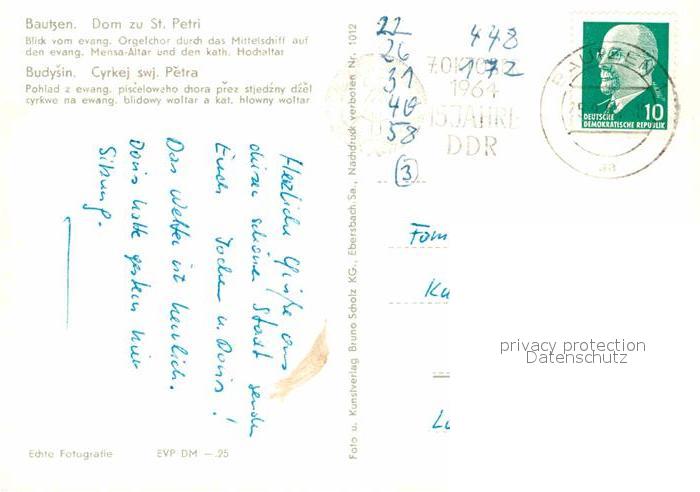 72641673 alte Postkarte Bautzen Sachsen Dom Petri Orglchor postalisch gelaufen Erhaltung siehe scans [KathaD79] KatCode: 11110014272010