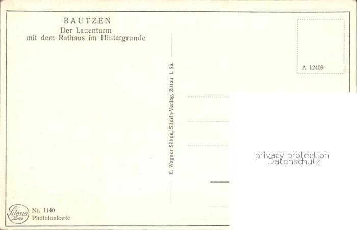 72424301 Bautzen Sachsen Lauenturm Rathaus Silesia Karte Nr 1140 postalisch nicht gelaufen Erhaltung siehe scans KatCode: 11110014272010