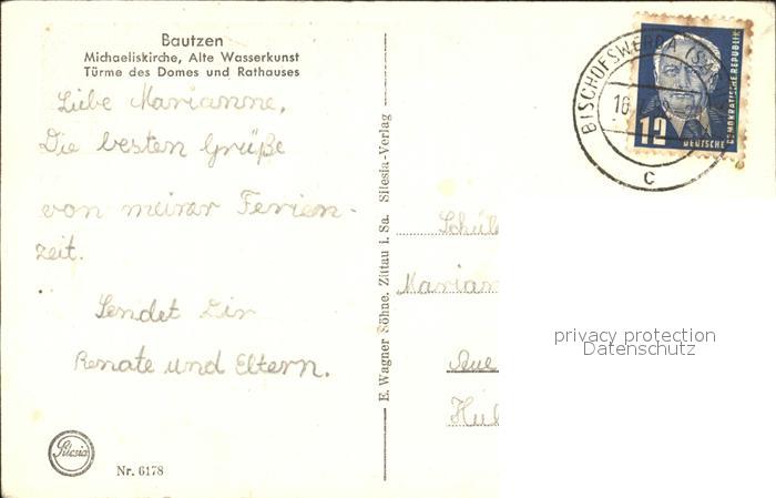 72291714 alte Postkarte Bautzen Sachsen Michaeliskirche Alte Wasserkunst Tuerme des Doms Rathaus postalisch gelaufen Erhaltung siehe scans KatCode: 11110014272010