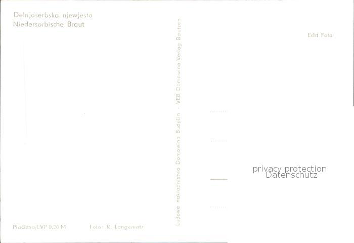 72546419 Bautzen Sachsen Niedersorbische Braut postalisch nicht gelaufen Erhaltung siehe scans [KathaD79 kv011box] KatCode: 11110014272010