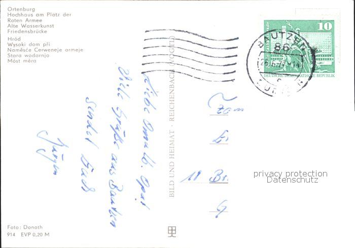 72279759 alte Postkarte Bautzen Sachsen Ortenburg Hochhaus Platz der Roten Armee Alte Wasserkunst Friedensbruecke postalisch gelaufen Erhaltung siehe scans KatCode: 11110014272010