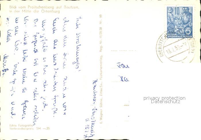 72174999 alte Postkarte Bautzen Sachsen Proitschenberg mit Ortenburg postalisch gelaufen Erhaltung siehe scans KatCode: 11110014272010