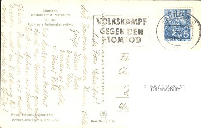 72460317 alte Postkarte Bautzen Sachsen Rathaus mit Petridom postalisch gelaufen Erhaltung siehe scans KatCode: 11110014272010