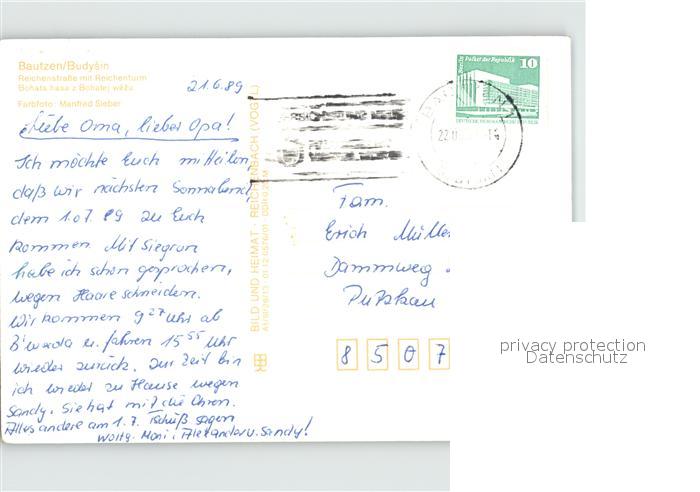 72480352 alte Postkarte Bautzen Sachsen Reichenstrasse Reichenturm postalisch gelaufen Erhaltung siehe scans KatCode: 11110014272010