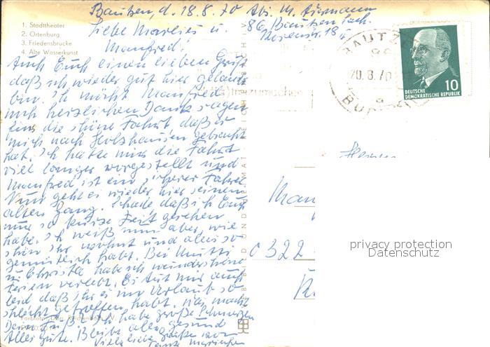 72371564 alte Postkarte Bautzen Sachsen Stadttheater Ortenburg Friedensbruecke Alte Wasserkunst postalisch gelaufen Erhaltung siehe scans KatCode: 11110014272010