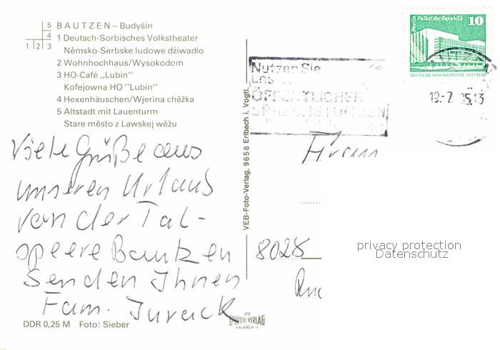 72643883 alte Postkarte Bautzen Sachsen Volkstheater Wohnhochhaus HO Cafe Lubin Hexenhaeuschen Altstadt Lauenturm postalisch gelaufen Erhaltung siehe scans [FriedD77] KatCode: 11110014272010
