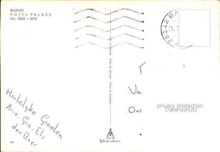 old postcard Baveno Hotel Palace postalisch gelaufen Erhaltung siehe scans