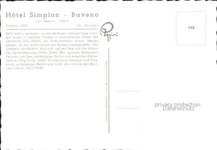 Baveno Hotel Simplon postalisch nicht gelaufen Erhaltung siehe scans