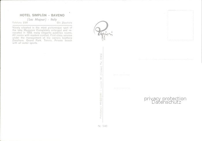 Baveno Hotel Simplon postalisch nicht gelaufen Erhaltung siehe scans