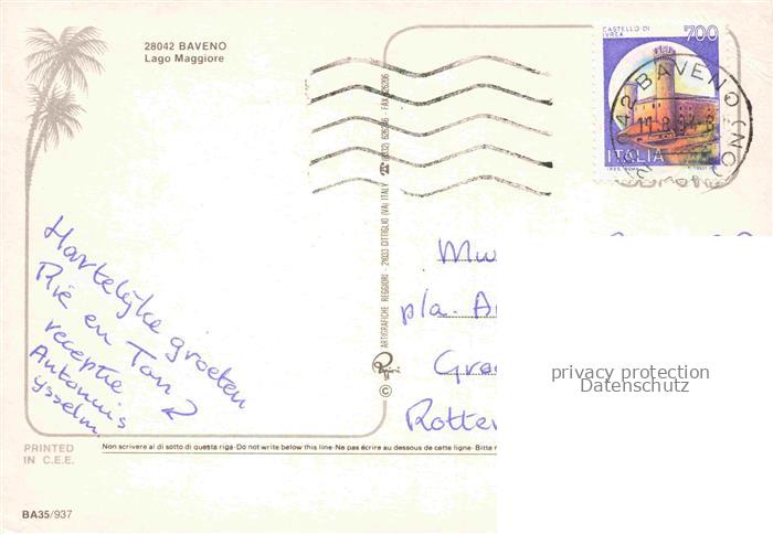 74006005 old postcard Baveno Lago Maggiore IT Passeggiata postalisch gelaufen Erhaltung siehe scans [WerneD78] KatCode: 11240