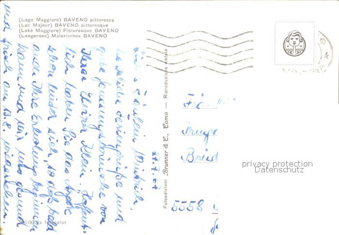 old postcard Baveno Uferpartie am See Segelboot postalisch gelaufen Erhaltung siehe scans