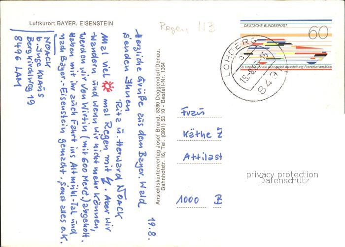 72226990 alte Postkarte Bayerisch Eisenstein Arber Stadtansicht postalisch gelaufen Erhaltung siehe scans KatCode: 11110009276115