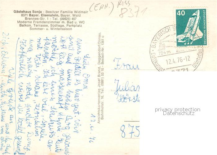 73763342 alte Postkarte Bayerisch Eisenstein Gaestehaus Sonja Panorama postalisch gelaufen Erhaltung siehe scans [WerneD78] KatCode: 11110009276115