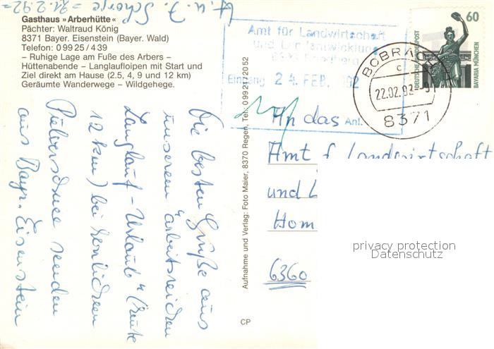 73600352 alte Postkarte Bayerisch Eisenstein Gasthaus Arberhuette postalisch gelaufen Erhaltung siehe scans [WerneD78] KatCode: 11110009276115
